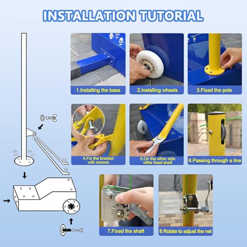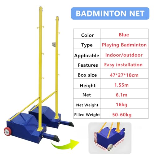 - ✪【Easy Installation】Badminton stand A mechanical pulley system can be used to help tighten the net and lock it into place. The Badmintonpole is equipped with wheels at the bottom for easy movement. It will not damage the interior floor. Installation is very simple, equipped with installation tools and can be completed with just screws.