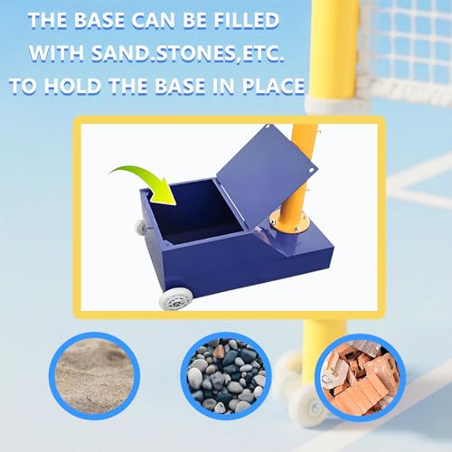 - ✪【Durable Base】The support poles and base of the badminton net stand are made of metal steel, which is sturdy and stable. Sand, stones, etc. can be added to the base box to increase stability and safety, so that it can stand firmly even in adverse weather conditions.