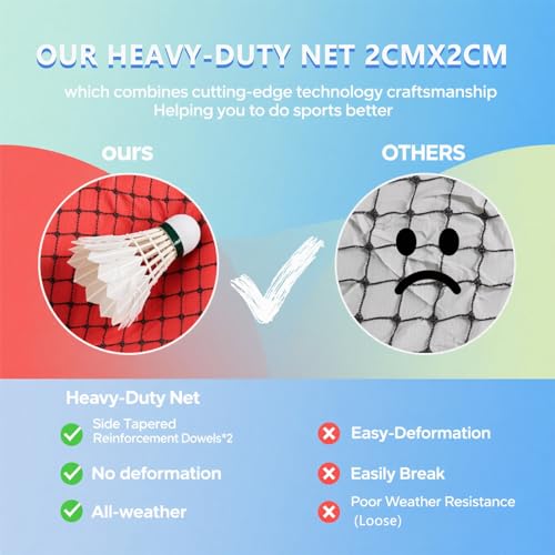 - ✪【QUALITY MATERIAL】The main body of this outdoor badminton net is made of high-quality materials, which is strong enough to cope with long-term bad weather and fierce competitions.