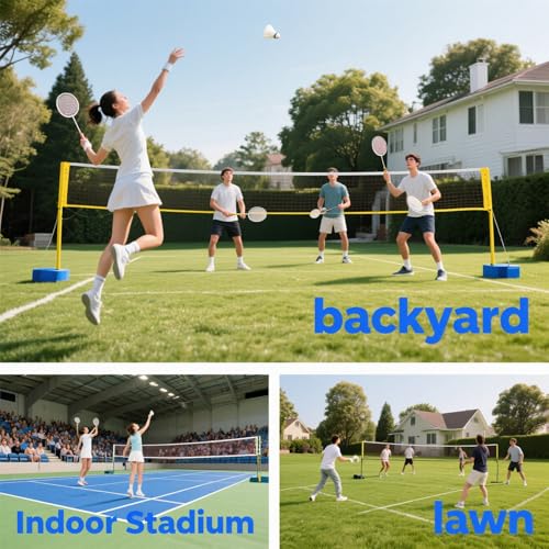 - ✪【WIDE APPLICATION】This portable badminton stand is a great choice for players of all ages and abilities. It provides effective body exercise and can be installed in the backyard, indoor school gym, on the beach, in the garden, on the lawn, etc., suitable for outdoor or indoor sports.