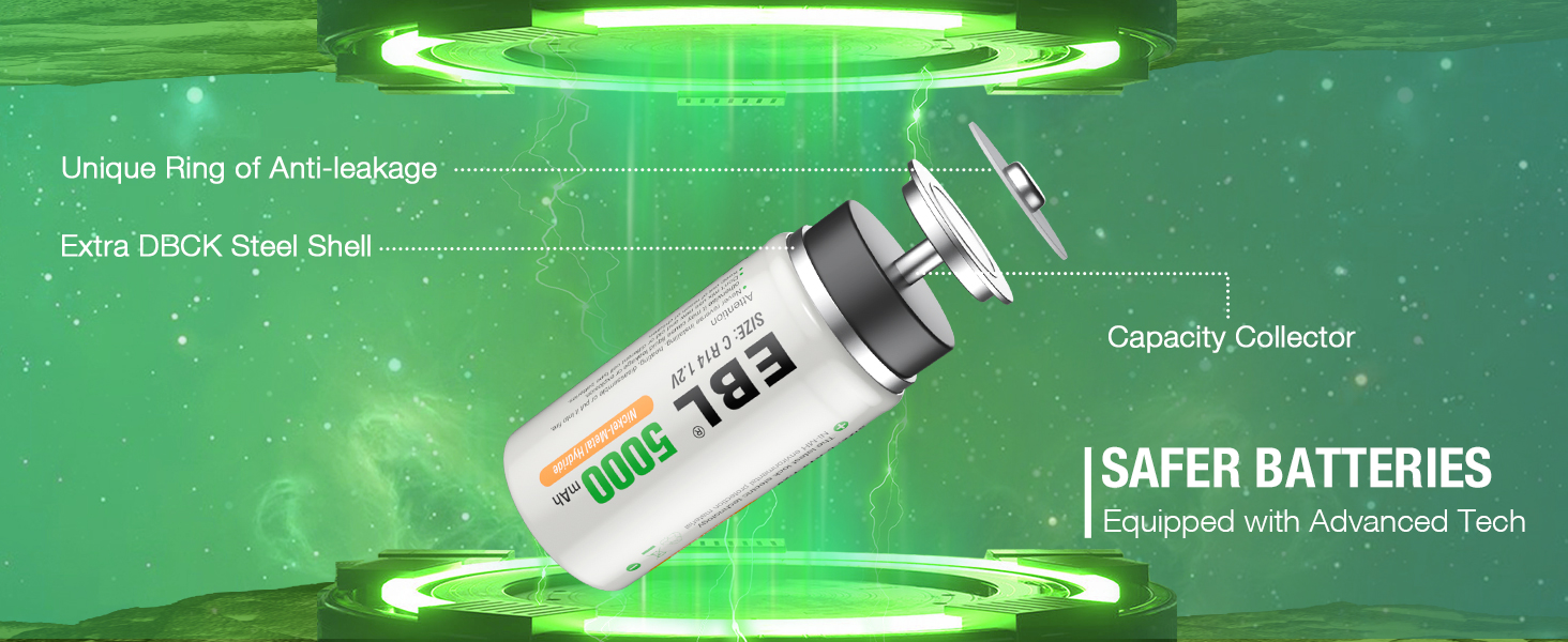 - High-Capacity C Cell 4-Pack: With an upgraded 5000mAh capacity, these batteries are ideal for high-drain devices like doorbells, dab radios, music keyboards, torches, and more.