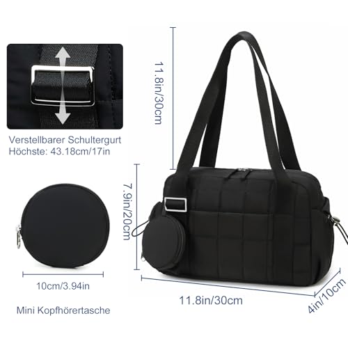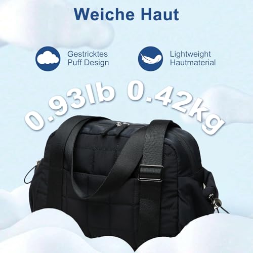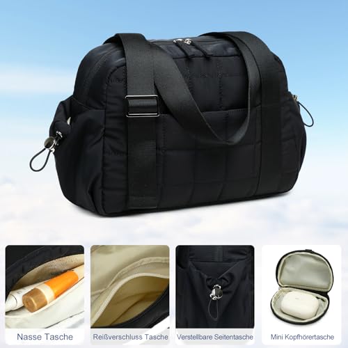 Premium quality and lightweight. The mini sports bag for women impresses with its high-quality quilted design with soft cotton filling. Weighing only 0.43 kg and measuring 30 x 10 x 20 cm (L x W x H), it is extremely light and compact – perfect for the gym, yoga or as a stylish everyday bag! The breathable material (100% polyester) feels pleasantly soft and is particularly durable.