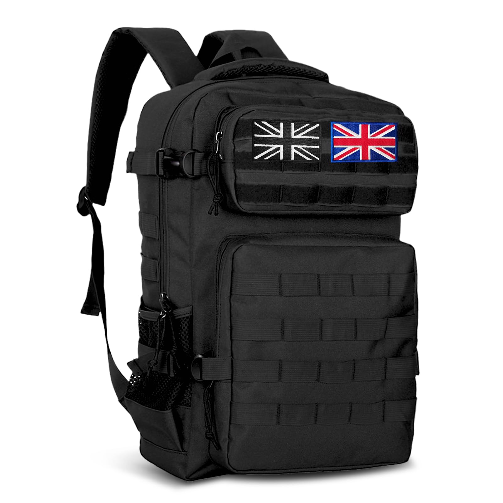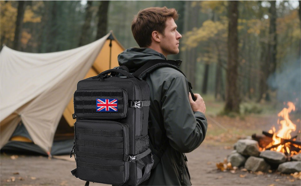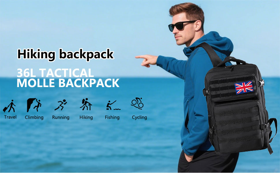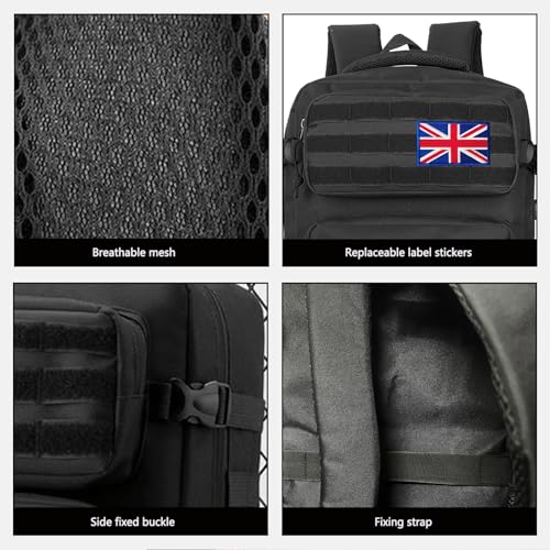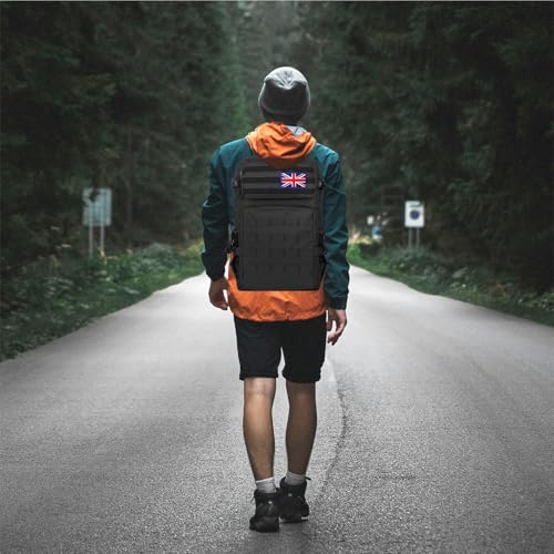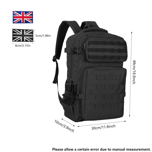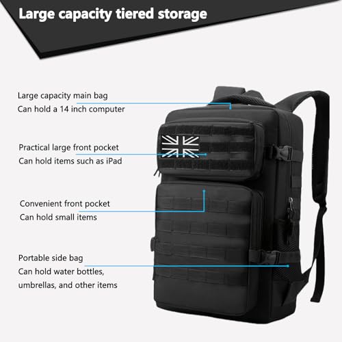 Lesbyit 36L Waterproof Hiking Backpack with Ventilated Straps, Multi-Compartment Camping Rucksack for Trekking, Travel & Outdoor – Tactical Backpack with 2 Flag Patches