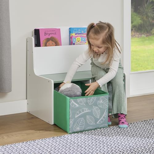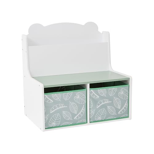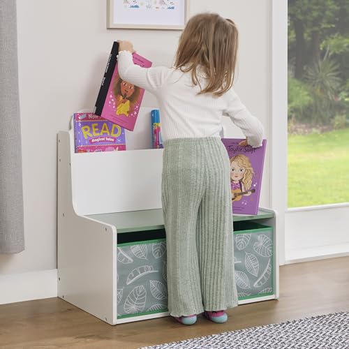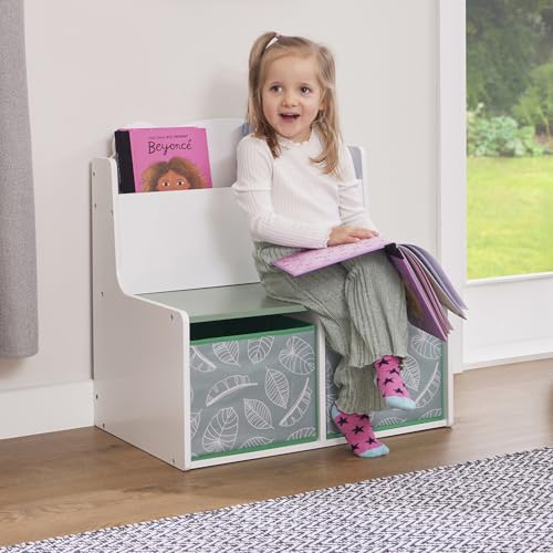 FEATURES: The deep bookcase compartment with rounded edges allows for storage of various size books and you can create a mini child’s library space in your own home. The fabric storage boxes have a lovely leaf motif to add a calming and nature inspired look to your room aesthetic.