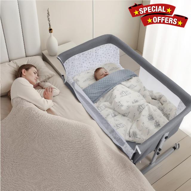 Baby Bedside Crib, Rocking Bassinet, Bedside Bassinet for Baby,Stable and Secure Bassinet Bedside Sleeper for Newborn & Infant,Height Adjustable,Movable Beside Bassinet With Mosquito Net (Grey)