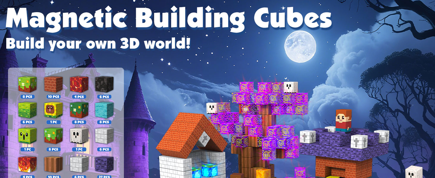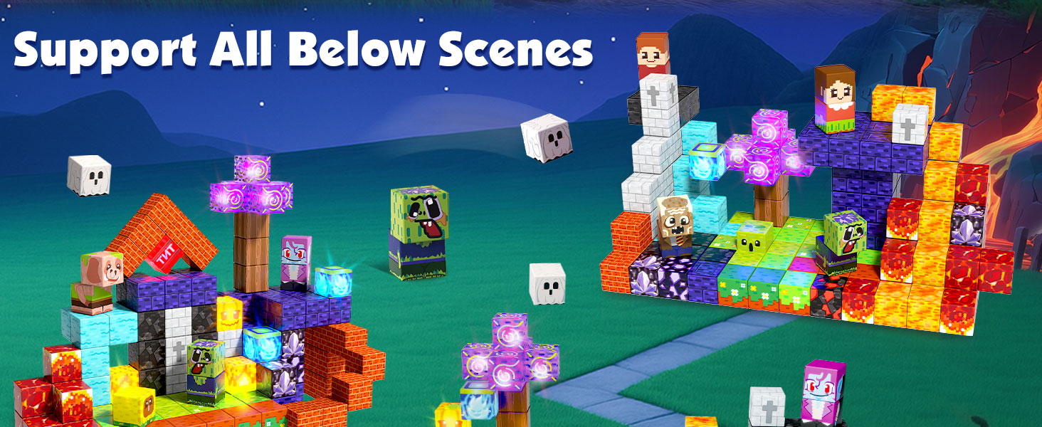 Parent- Child Interactive Games – Every set of our sensory tiles and magnetic cubes is an adventure waiting to happen. Let children effortlessly assemble blocks to create characters, scenes: Fire meets Grass, zombies meet people – every ‘Click’ brings a sense of accomplishment! Perfect for kids' toys, especially for boys aged 4-8, these magnetic construction toys make construction fun and easy. It helps to promote kids’ creative thinking, concentration and patience, hand-eye coordination motor skills, cooperative skills, spatial and motor skills!