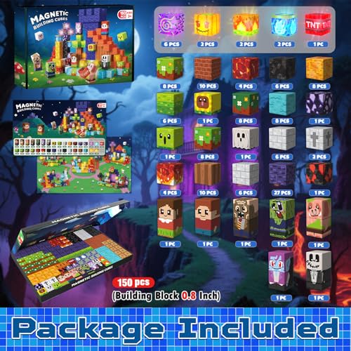 Safe & Durable – Dive into a universe of magnetic toys designed for budding builders. Including 150 magnetic cubes in 39 designs. Among these are 13 cube tiles set up with switches that emit beautiful light. Idea booklet with the storyline and beautiful patterns, keep them busy in clever ways. Magnetic building cubes are made of high quality ABS material and crafted with the round edges and right size. Our magnetic cubes kit with internal magnets, which is easier for toddlers ages 3+ to stick the cubes together and make builds sturdy.