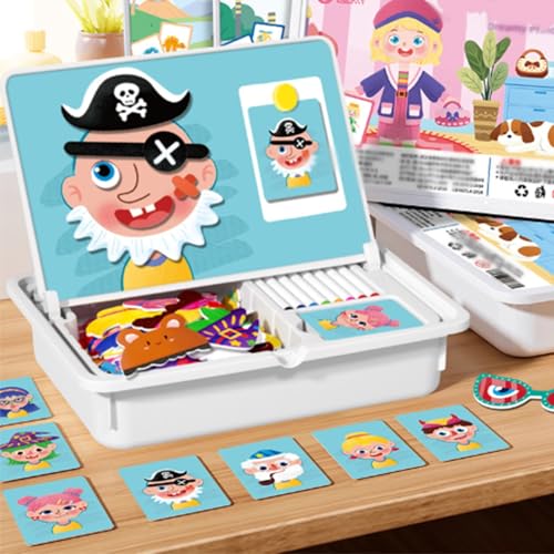 Magnetic Puzzles Face Dress Up Travel Game Double Side Preschool Educational Learning Toy for Kids, Magnetic Dress Up Game, Enhances Creativity and Learning for Boys Girls (A)