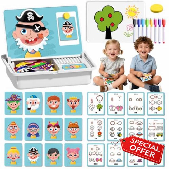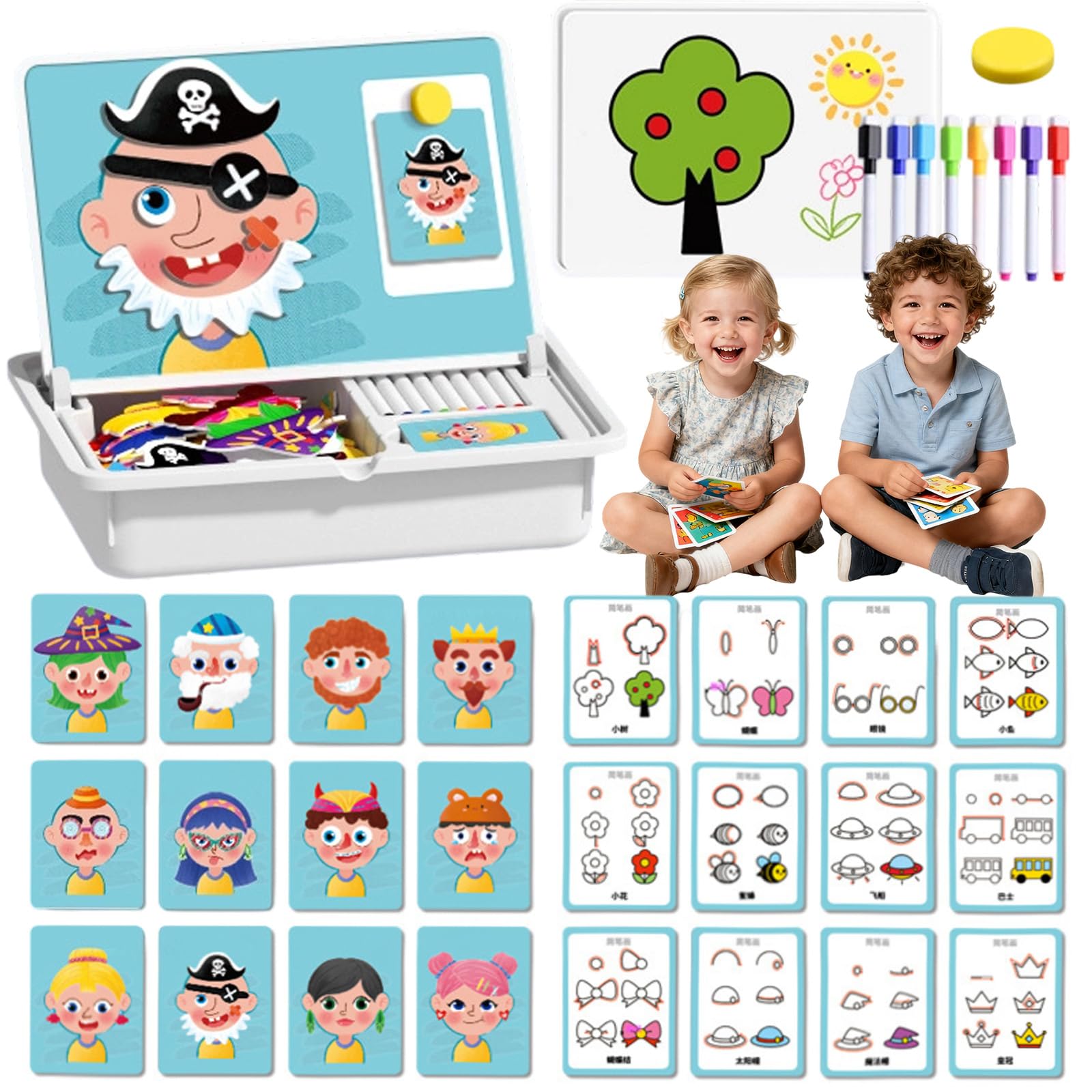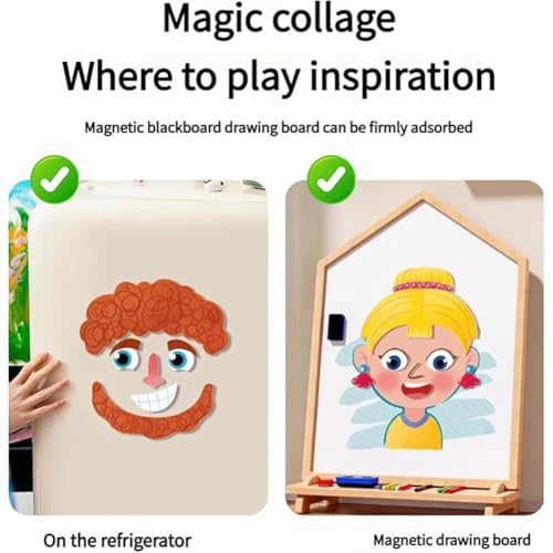 - 【Double-sided Magnetic Gameplay, Double The Fun】One side is a color pattern face puzzle to exercise fine movements; the other side is a blank whiteboard for free graffiti and painting. All magnetic accessories can be adsorbed on metal surfaces such as boards or refrigerators to create children's creative “wall art”.
