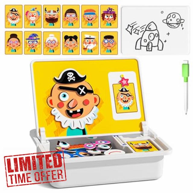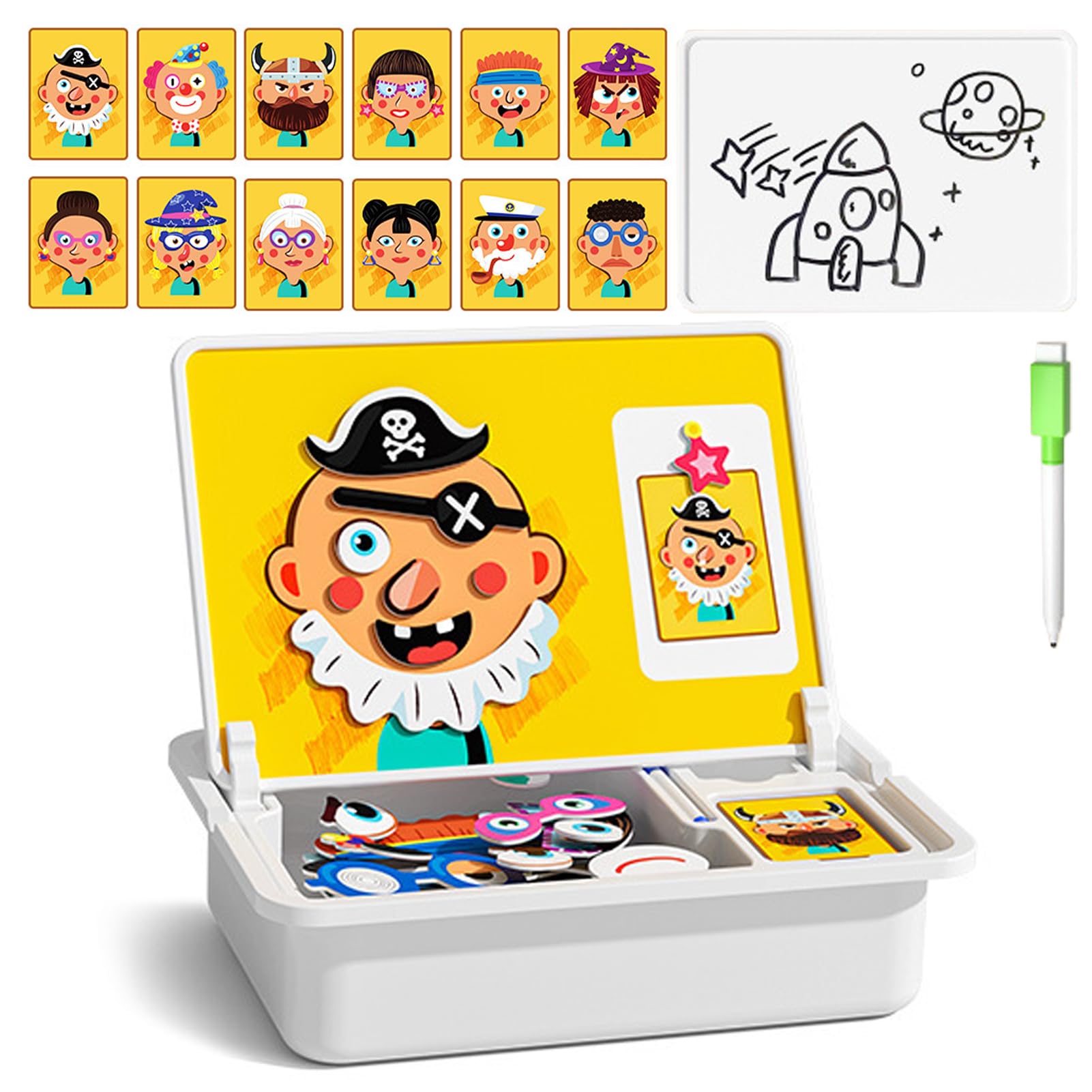 Ideal Gift & Holiday Games: This Magnetic Puzzles Face Dress Up Travel Game will attract your kid to play, enjoy thinking and learning. It's convenient for your child to play the funny faces board game at home or outdoor travel