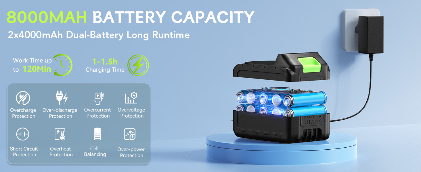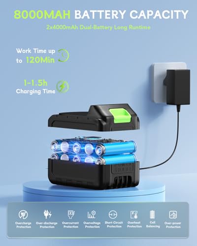 ⚡ Dual-Battery Long Runtime: Equipped with two 4000mAh batteries for extended cleaning sessions. Tackle large patios, cars, or gardens without worrying about frequent recharging.