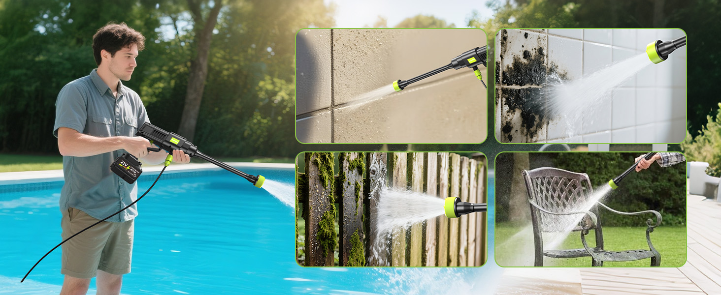 10-Stage Pressure Control: Smartly adjust water pressure across 10 levels – from gentle plant watering (Level 1) to powerful stain removal (Level 10). Perfectly suited for cars, floors, patios, and garden surfaces.