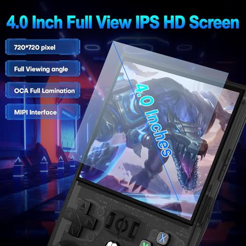 - 【STUNNING 4.0-INCH IPS SCREEN】This Mini Retro Game Console With 4.0-inch IPS Screen 720*720 high resolution makes your game console screen details more vivid. Enjoy bright colors and sharp graphics that enhance your gaming experience. The full lamination technology reduces glare and provides a crystal-clear view from any angle, making hand held game console perfect for gaming on the go.