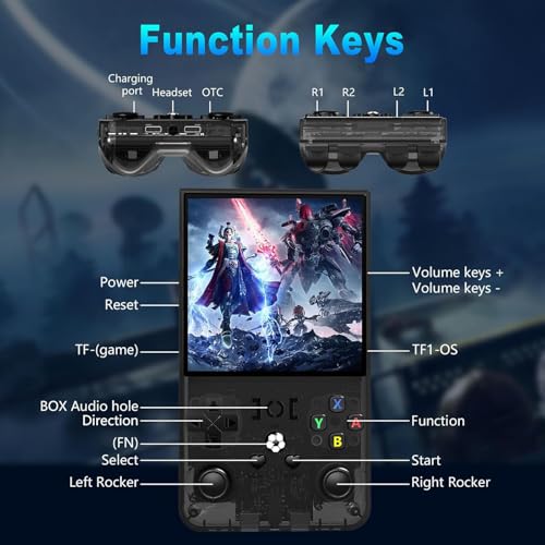 - 【ERGONOMIC DESIGN FOR COMFORTABLE GAMING】XISKT retro gaming console handheld boasts an ergonomic design, making it comfortable to hold and operate for extended periods. Take full control of your games with dual joysticks and a full key layout. Whether you're jumping, shooting, or racing, the R36MAX provides precise and comfortable controls for all types of games.
