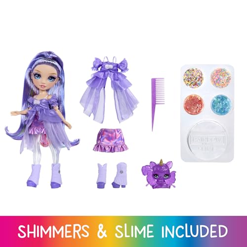 Rainbow High Rainbow Shimmers with Slime – Violet, Purple – 28cm Fashion Doll, Comes with a Slime Kit and a Pet Squirrel, Suitable for Children Ages 4+