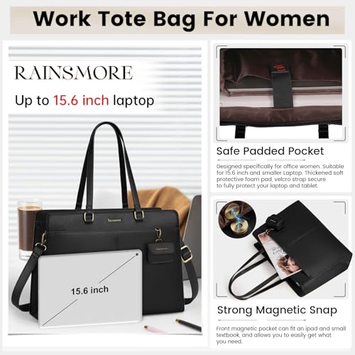 RAINSMORE Laptop Bag for Women 15.6 Inch Work Tote Bags