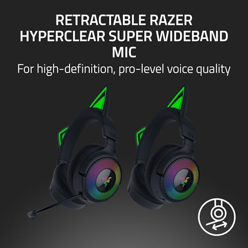 - Retractable Razer HyperClear Super Wideband Mic – for high-definition, pro-level voice quality: With a wider frequency range, this next-gen retractable mic picks up all the details in your voice, so that everything you say shines through clearly and naturally.