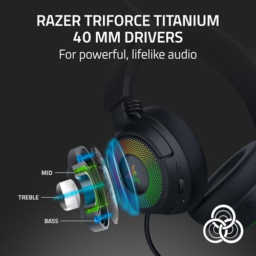 - Razer TriForce Titanium 40 mm Drivers – for powerful, lifelike audio: Our patented 3-part driver design brings every sound to life with crisp highs, smooth mids, and deep, punchy lows that don’t muddy—so you get pure audio magic for an ultra-immersive experience.