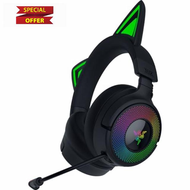 - Stream and Game Reactive Kitty Ears – Powered by Razer Chroma RGB: With 16,8M colors and endless lighting effects, show off your style with kitty ears and earcups that dynamically react to live events and sync with 300+ games and 500 devices across 50+ partners.