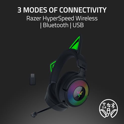 Razer Kraken Kitty V3 Pro – RGB Kitty wireless gaming Headset – reactive cat ears for streaming Headphone – Triforce 40mm Driver – Hyperspeed Wireless and Bluetooth – THX Spatial Audio | Black