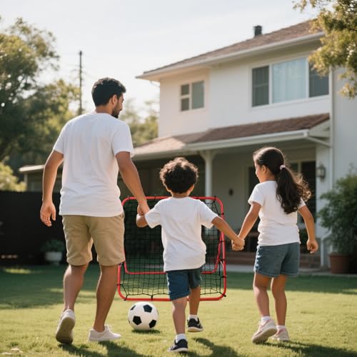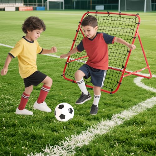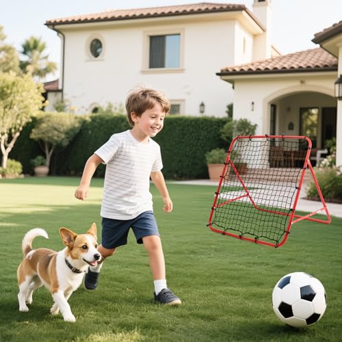 Rebounder Net Practise Football Training Net Soccer Kickback Target Goal Pro for Children Kids Play Teaching Equipment Adjustable Portable Soccer Door Red