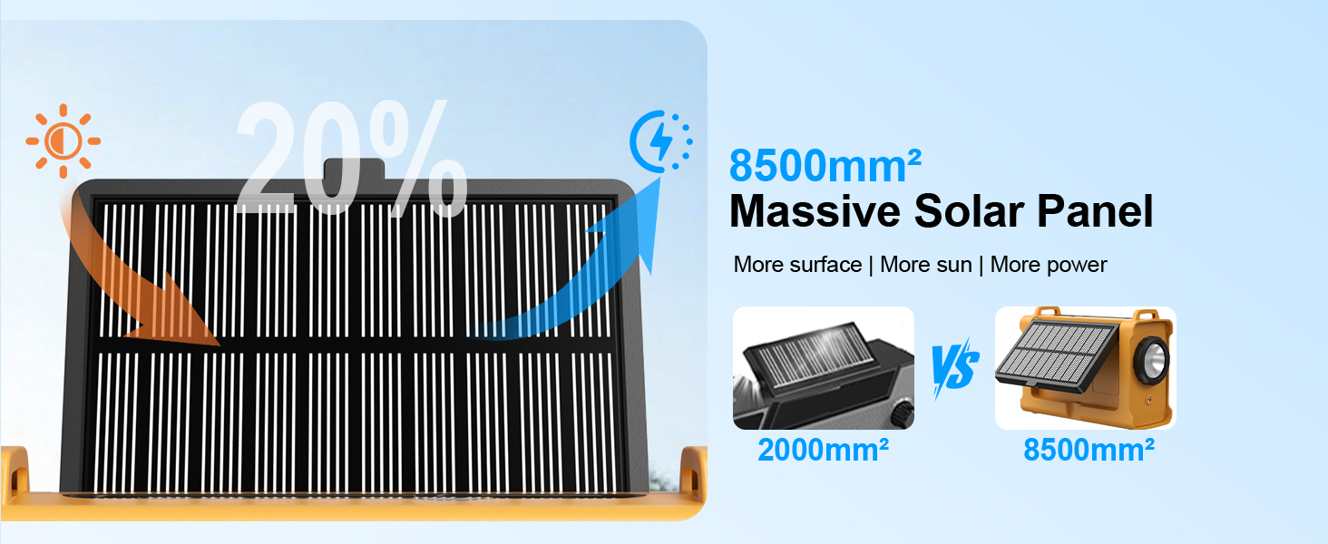 The new ROCAM CR1030 solar radio features an 8500mm² solar panel, charging 4x faster than traditional models