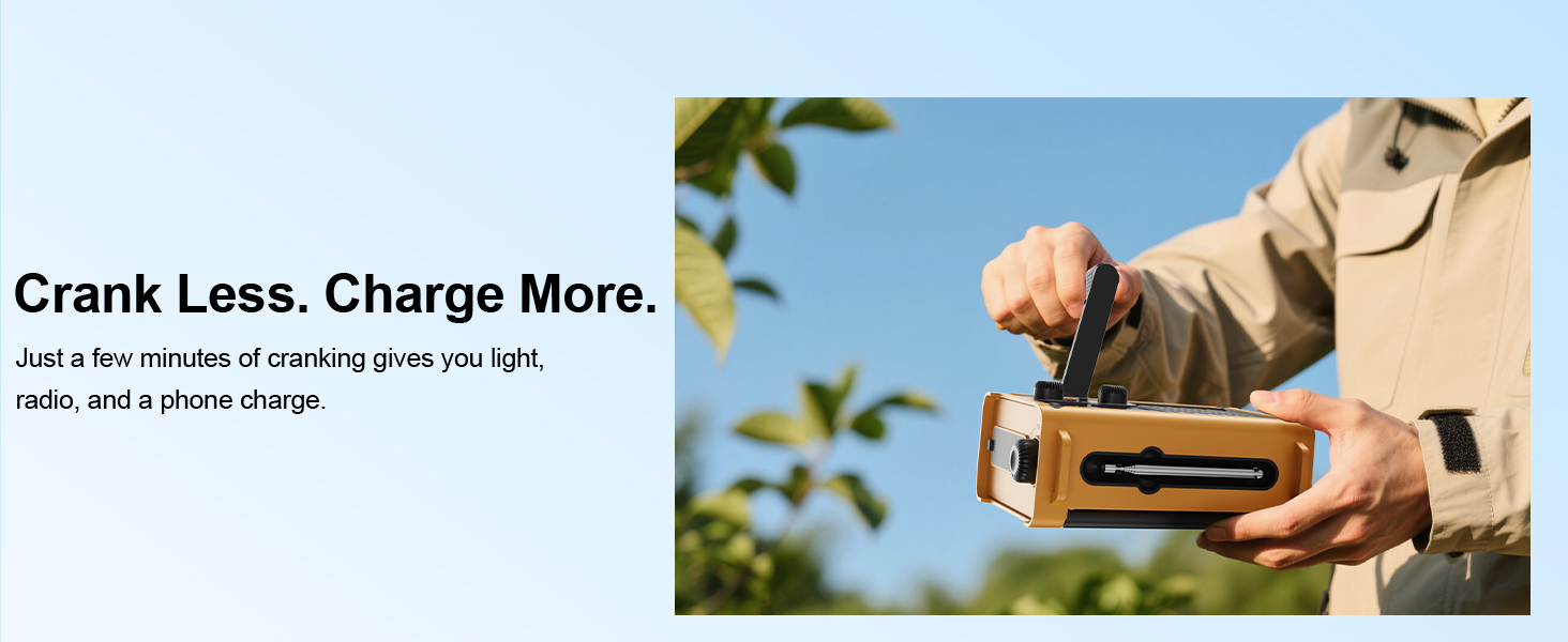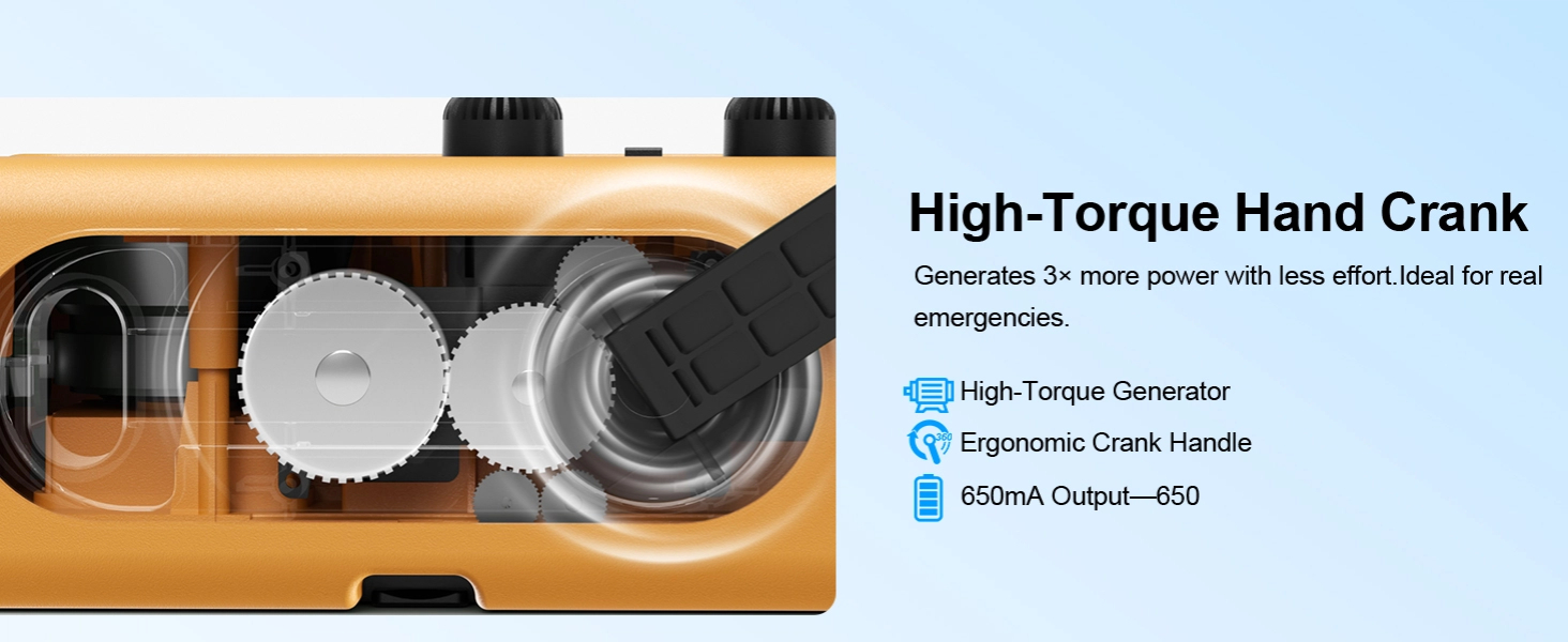 Hand-crank charging for endless power! The ROCAM CR1030 lets you generate energy instantly with an extended handle and improved generator, quickly powering up your flashlight, radio, or phone