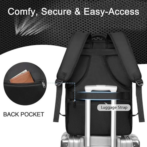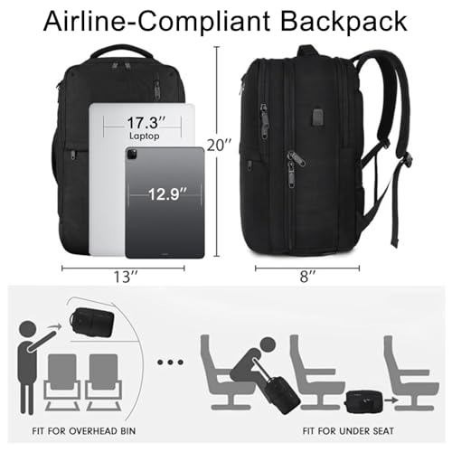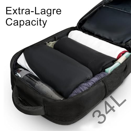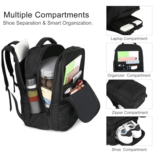 seyfocnia Cabin Bag, Flight Approved Large Laptop Backpack, Carry On Backpack for Airplanes, Multi-Compartment Design with Shoe Compartment for Men Women, Black