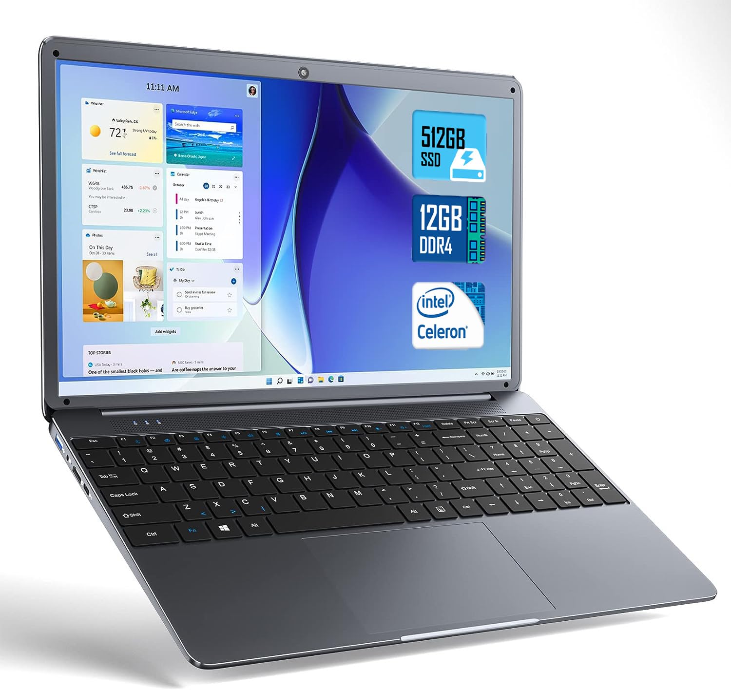 15.6 Inch Laptop 12GB RAM 512GB SSD, 1080P FHD Celeron N5095 Up to 2.8GHz, PC Notebook with Dual Band WiFi, 2xUSB 3.0, Keyboard Film in Eight Languages