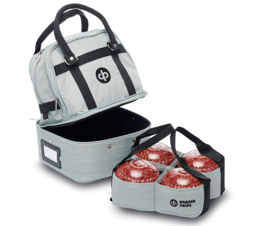 A durable nylon bag with zipped base section to hold four bowls. The upper section has two zipped compartments giving plenty of room for additional accessories. Supplied complete with matching four bowl carrier. Although compact and easy to handle this bag is too small to hold a pair of bowling shoes, for a bag which holds bowling shoes you will need our Midi or Maxi sized bags.