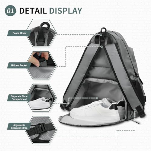 SUIKIHUM Tennis Backpack for Rackets, Waterproof Tennis Bag with Shoe Compartment, Wet/Dry Pocket, Fence Hook, for Tennis, Pickleball, Badminto