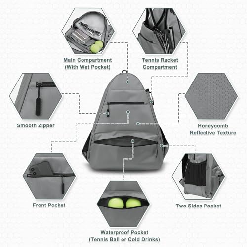 -Durable & Versatile- –Crafted from high-density Oxford fabric with a stylish honeycomb texture. Water-resistant, easy to clean, and built to withstand daily use. Great for tennis, pickleball, badminton, gym, or travel