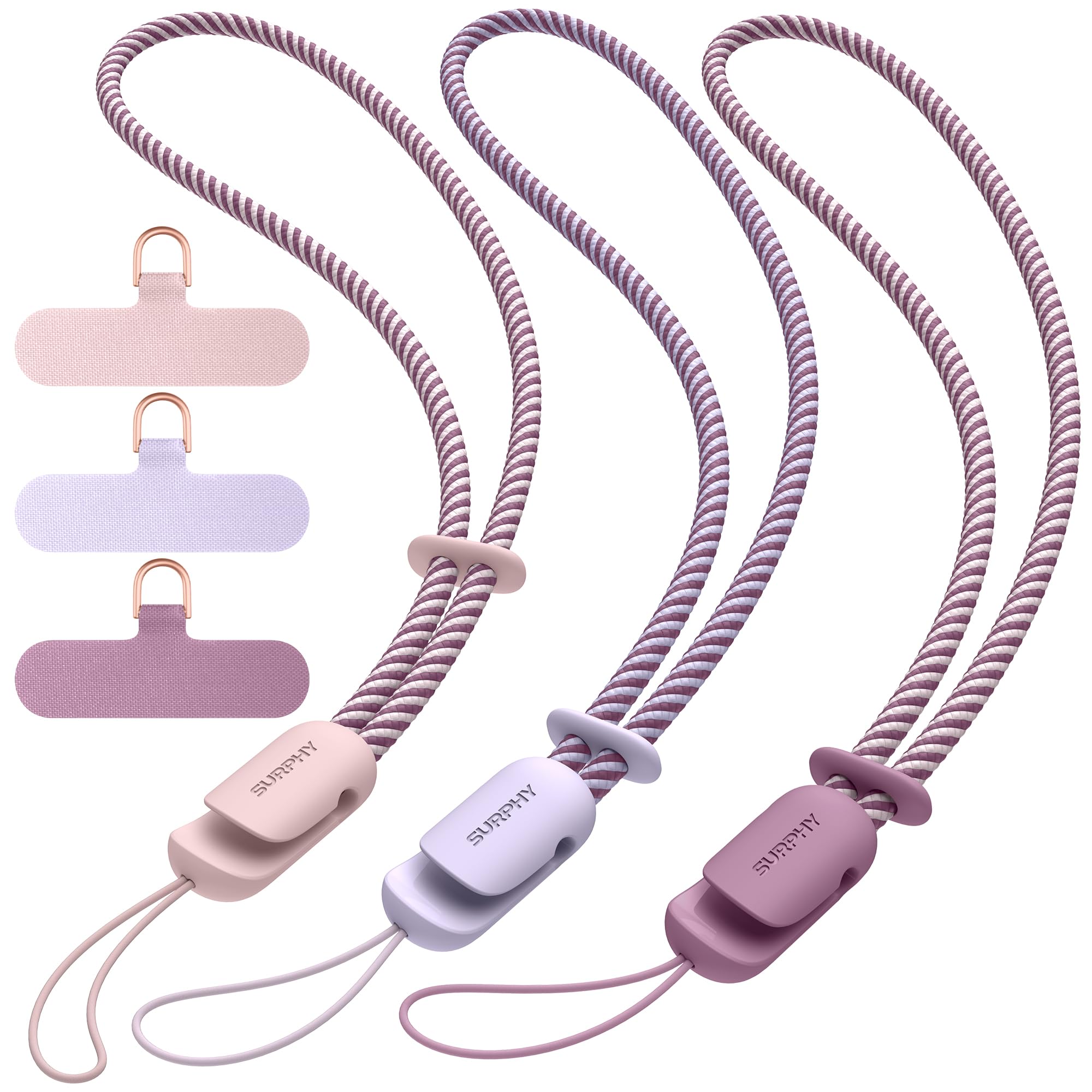 SURPHY 3 Pack Phone Wrist Strap, with CellPhone Tether Tab, Adjustable Phone Lanyard Anti-Theft Phone Strap, A- Pink & Lilac & Lilac Purple