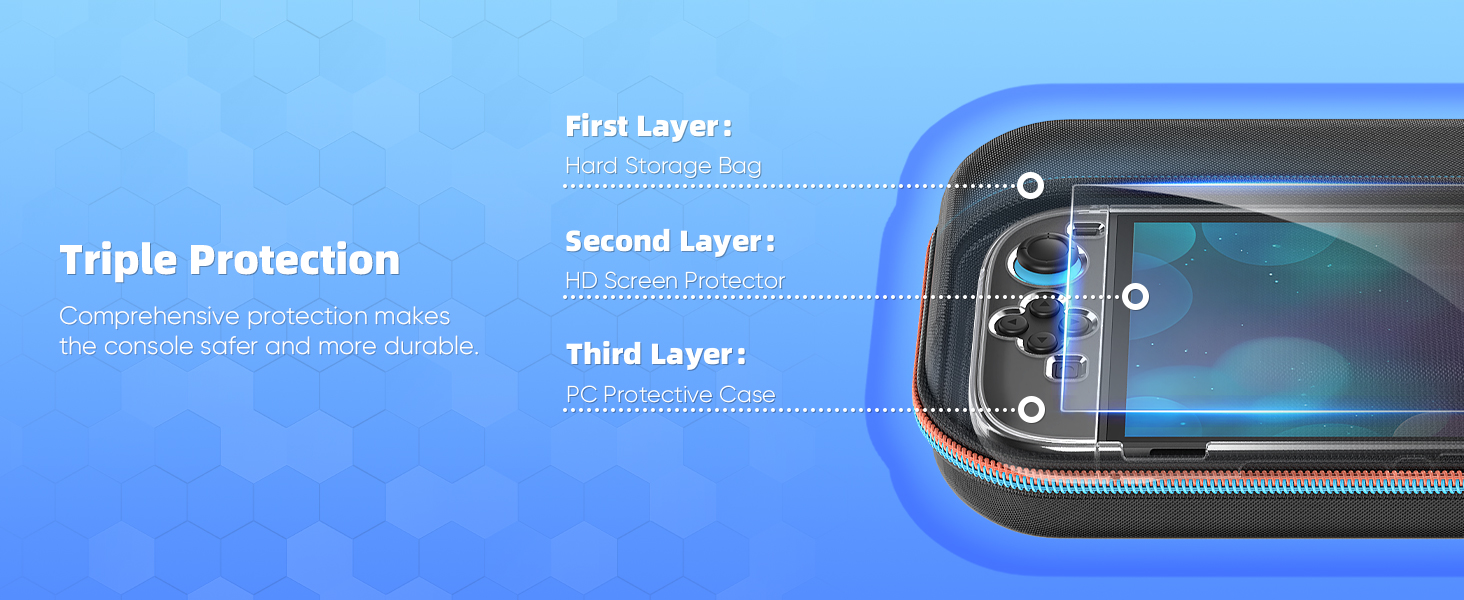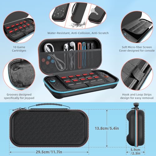 Switch 2 Carrying Case — Designed for protection and storage, convenient for travel. 1:1 molded internal grooves provides precise fit for the switch 2 console, preventing for Nintendo Switch 2 from moving around. The high-quality EVA outer hard shell protects the Switch from falling, while the soft internal material prevents scratches on the device. Mesh provides secure storage space for some small accessories, such as charging cables, earplugs, and 2 additional Joy Controller.
