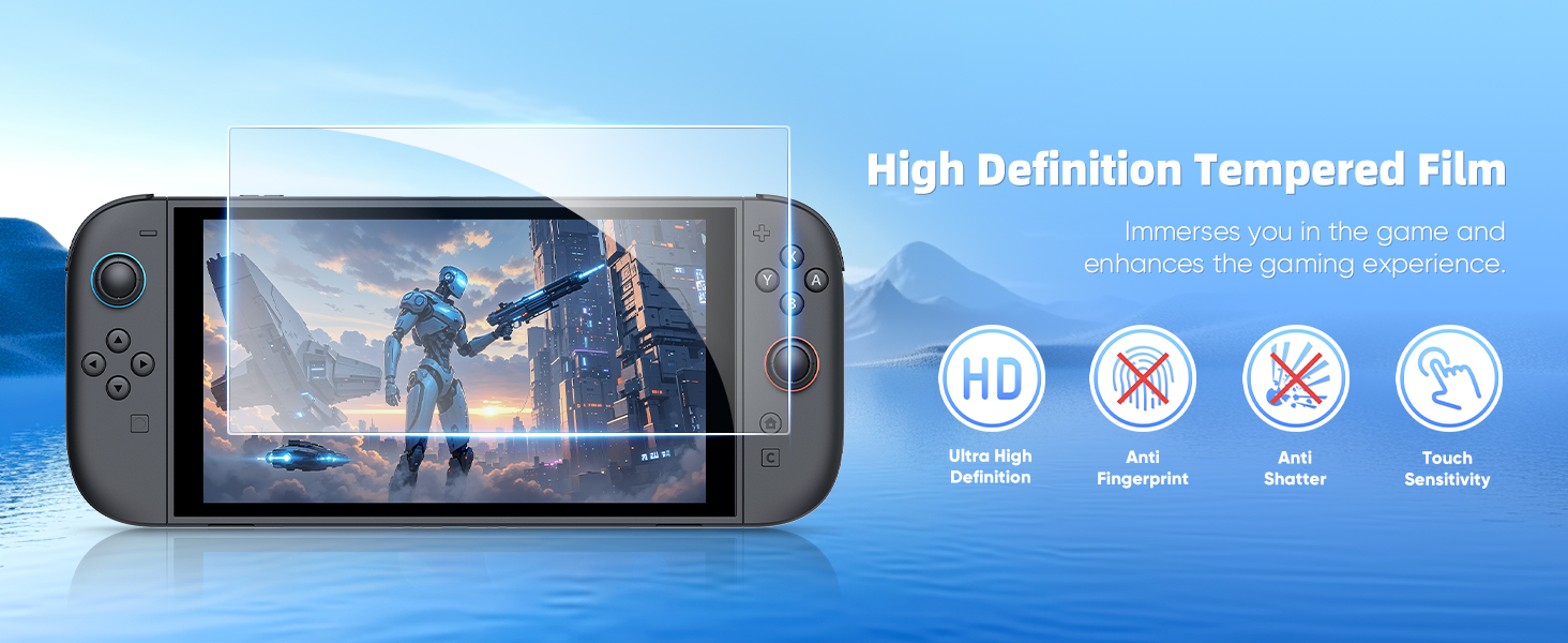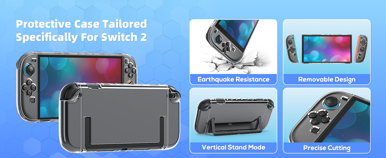 Clear Case & Screen Protector — The hard protective case made of PC material provides comprehensive protection for your switch 2 console and controller, while support tabletop mode. The screen protector is fingerprint resistant, with a hardness of 9H, and can prevent scratches and bumps, providing comprehensive protection for Nintendo games. You can freely pair it with 8 thumb grips. for Nintendo Switch Brackets