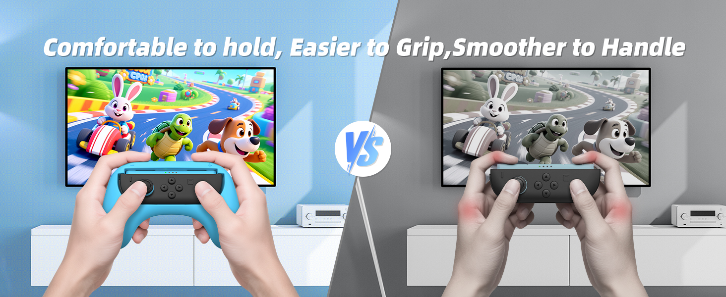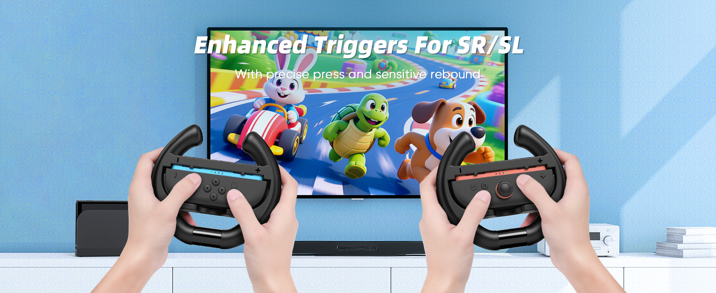 Ergonomic Grip & Steering Wheels — Enhanced Gaming Experience. The included switch 2 steering wheels and controller grips are made of premium ABS with an ergonomic, anti-slip design. They enhance grip and easy to trigger the SL and SR, improve your experience in racing and fighting games, enhances comfort for Nintendo Switch 2 Mario Kart. The game card box can hold 24 game cards, and the carrying case can hold 12 game cards. for Nintendo Switch Brackets