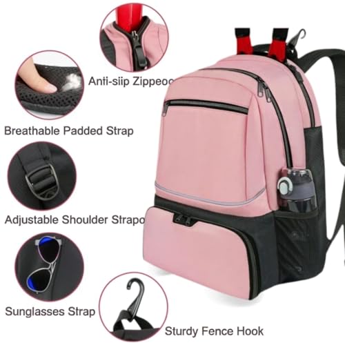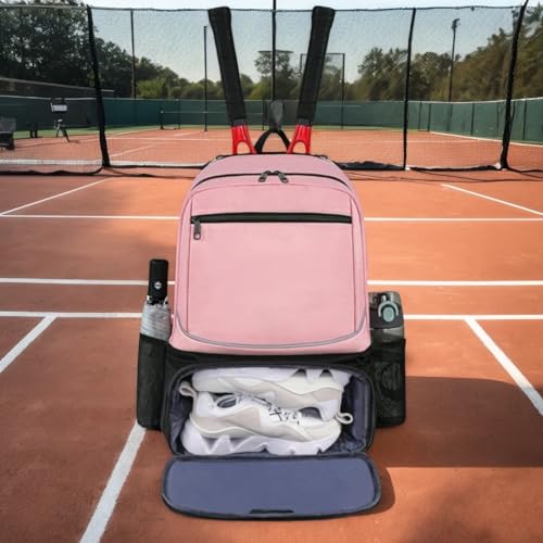 Tennis Backpack with Fence Hook – Badminton Racquet Bags with Separate Shoe Compartment for Women and Men, Side Mesh Pocket for Tennis Balls, Holds 2 Racquets for Sports Enthusiasts