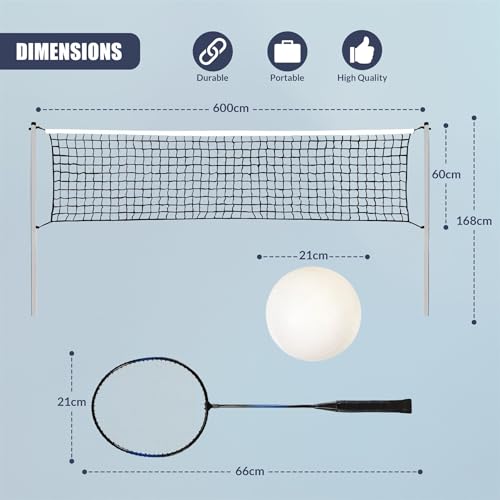 ADJUSTABLE HEIGHT: Comes with 6 telescopic poles for 3 height settings. Great for children and grown-ups alike, this adults and kids badminton set with net for garden adapts to players of all sizes.
