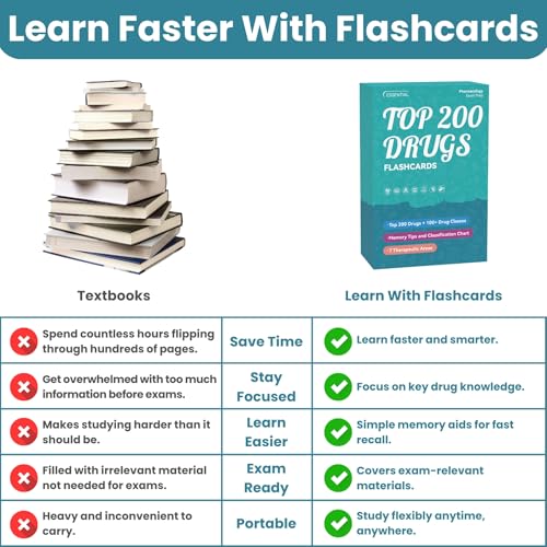 ✅ Comprehensive & Up-to-Date: Master the most essential medications. This complete set of Top 200 drug cards covers a curated list of both foundational and current drugs relevant to today's practice. An essential resource for any pharmacy tech or nursing student.