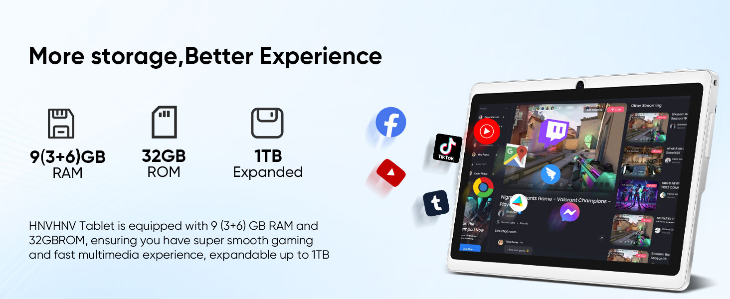 【Smooth Performance】This tablet is equipped with a 1024×600 IPS touch screen, RK3562 quad-core processor, 9GB memory (3GB + 6GB virtual memory), 32GB ROM, and the tablet storage space can be expanded to 1TB using an SD card, which can store everything you need.