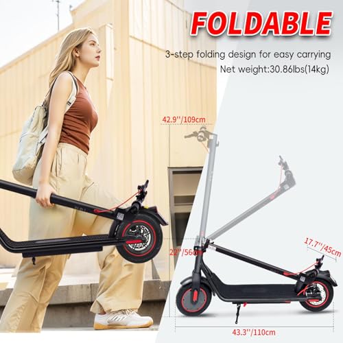 TYOKUM Electric Scooter 10 inch Big Solid Tires, Electric Scooters Adult, 25-30km Range, 3 Speed Mode, Foldable Electric Scooters with APP, Double Braking System E Scooter for Adults and Teens Gifts
