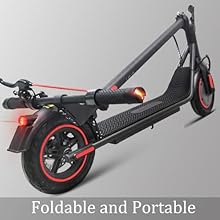 - Foldable, Lightweight & Portable:Weighing around 12.5 kg, the electric scooter folds down in seconds and is easy to carry or store. Perfect for city commuters, students, or weekend adventurers — it fits in car trunks and tight storage spaces with ease.