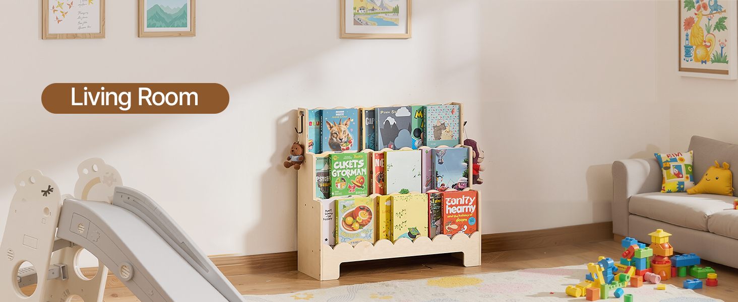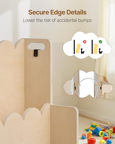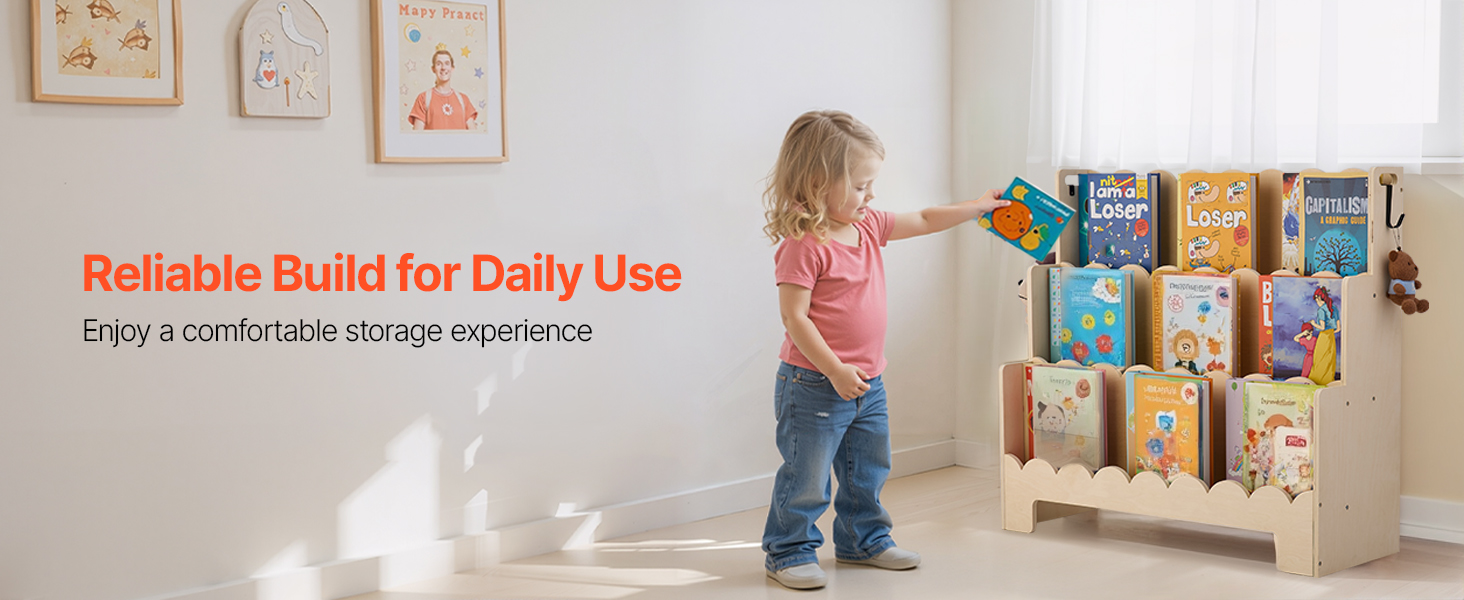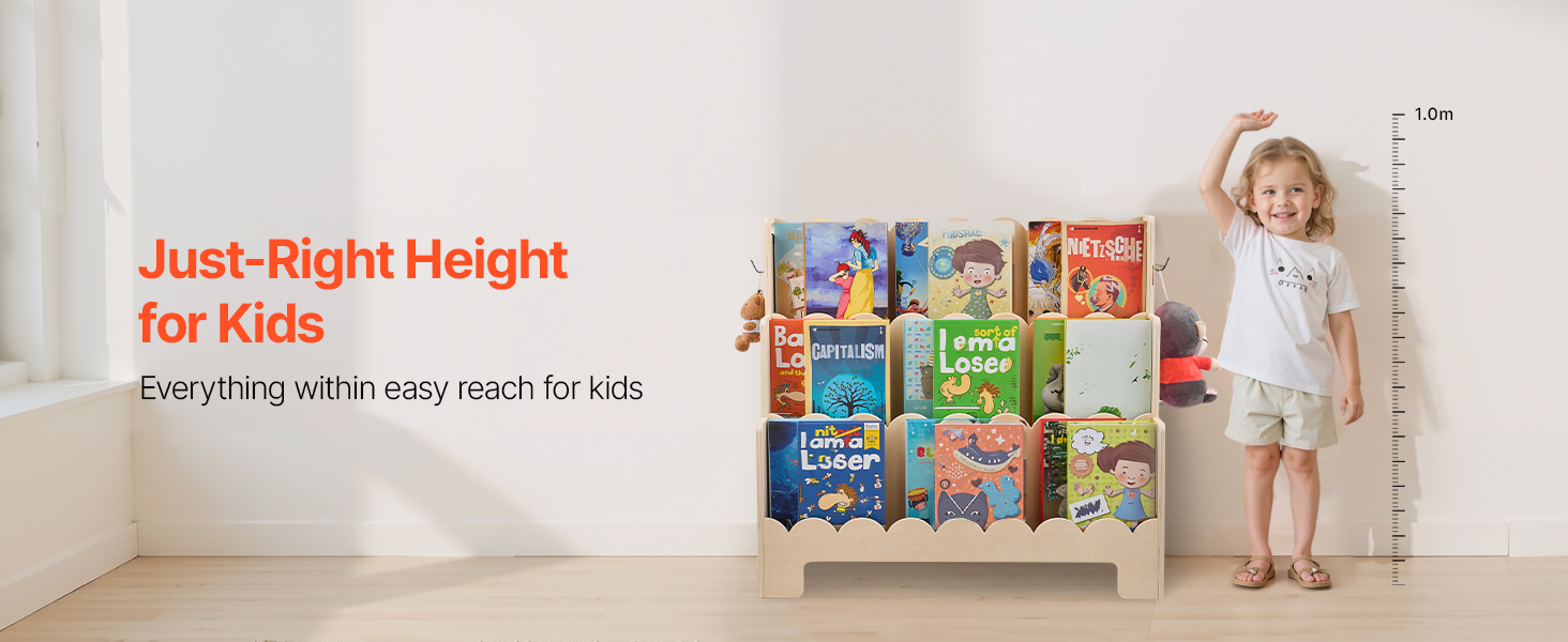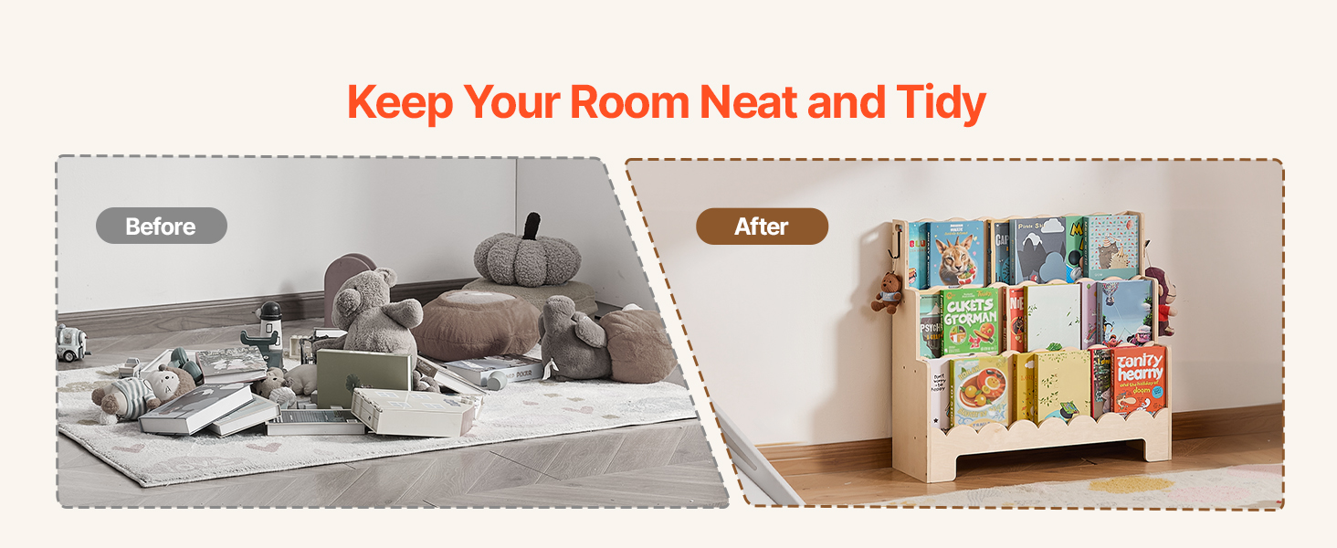Easy to Use: This montessori bookshelf features open cubbies so kids can easily see and grab items. It provides a practical, neat, and attractive storage solution at a child-friendly height to build their independence and make cleanup fun