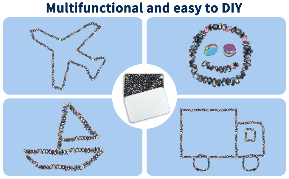 Compact and lightweight, the tin storage box makes this set highly portable, perfect for the office, home, travel, or as a stress relief toy on the go. Made from high-quality ferrite magnet metal, the beads are durable, long-lasting, and reusable.