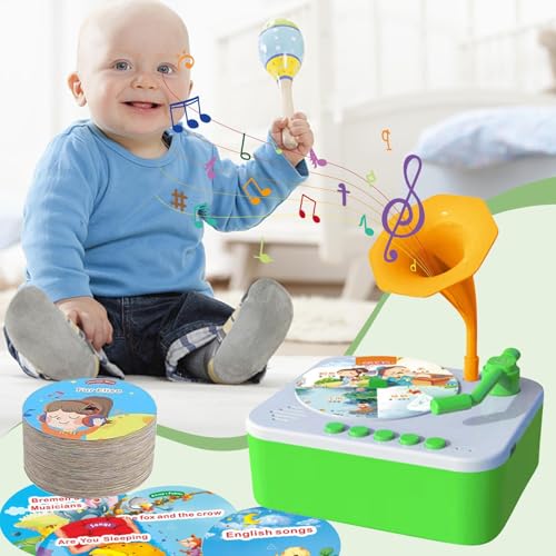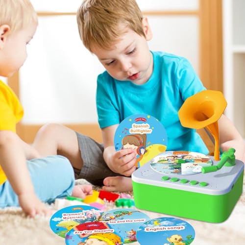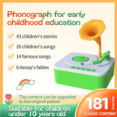 Xujuika Kids Gramophone with 96 Cards – Kids Phonograph Toddler Record Player – Sensory Learning Educational Storytelling Music Box for 3+ Years Boys Girls Daughter Children So