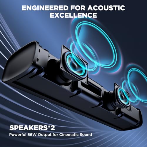 Yinet-EU Soundbar for TV, 56W Speakers with Bluetooth 5.3/ARC/Optical/AUX Inputs – Wall Mountable Home Theater Surround Sound System Small Sound Bar for PC/Gaming/Projectors with 3 EQ Modes (Black)