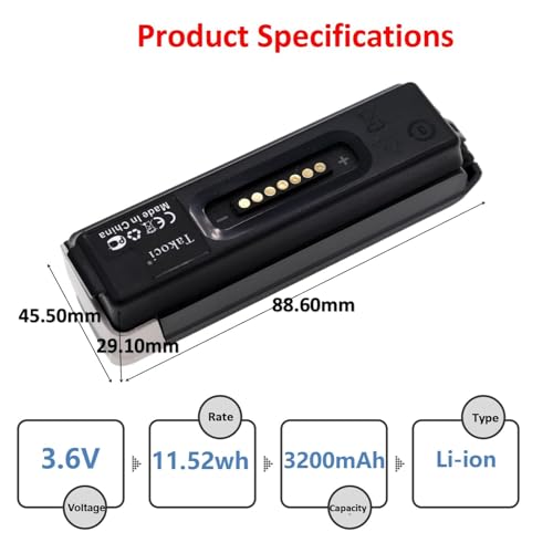 - Specification: Voltage 3.6V, Capacity:3200mAh/11.52Wh, Size:77.45 x 22.40 x 24.10mm, Weight:134.4g*10