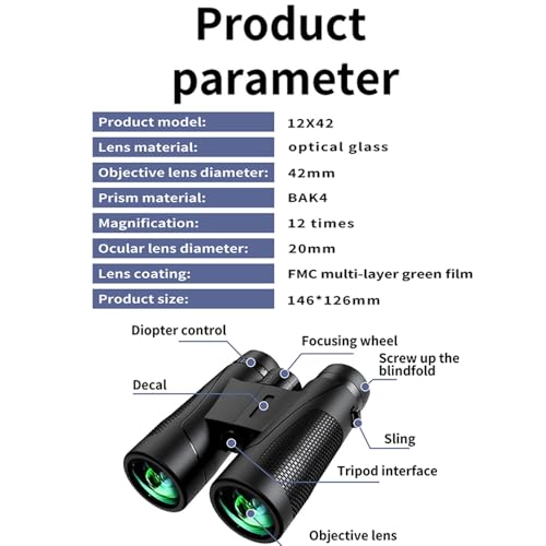 12×42 High-Power Adult Binoculars with BAK4 Prism, FMC Lens