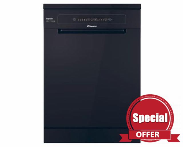 Candy Rapidò Candy Rapido’ is the Fastest & Most Spacious Dishwasher in the market. It is provided with a wide set of rapid cycles for every needs, simplifying daily usage thanks to the MAXI-TUB, the most spacious tub in standard size for loading even the largest items.Less washing time, more washing space. Speed-Drive Inverter Motor Candy Rapido’ is powered by the new SPEED-DRIVE INVERTER, the most innovative and durable brushless motor, able to increase the cleaning performance while reducing the energy consumption. Maxi TUB The new Candy Rapido’ has the most spacious TUB in the market (in STD size), providing maximum space for your kitchenware, even the largest like: oven trays, cutting board, salad bowl. Start Delay 3-6-9 h This Candy dishwasher gives you the possibility to delay the start time of the wash cycle. So you can set the program to start with a delay of 3, 6, or 9 hours. 49′ Rapid The Rapido’ dishwasher is provided with the 49 minutes cycle, able to perfectly wash a half load, cutting consumption.