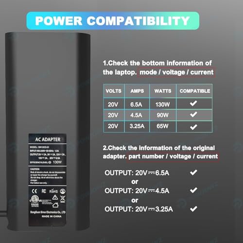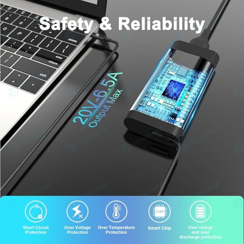 - ✅[ ] — 130W USB C Laptop Charger, Input: 100-240V, 50-60Hz, Output: 20V/6.5A, 20V/4.5A; 20V/3.25A; 20V/2.25A. Max 130W (supports 130W, 96W, 90W, 87W, 65W, 61W, 45W); 130W USB C laptop charger will automatically detect and intelligently recognize your device, providing fast and stable power to help maintain healthy battery life